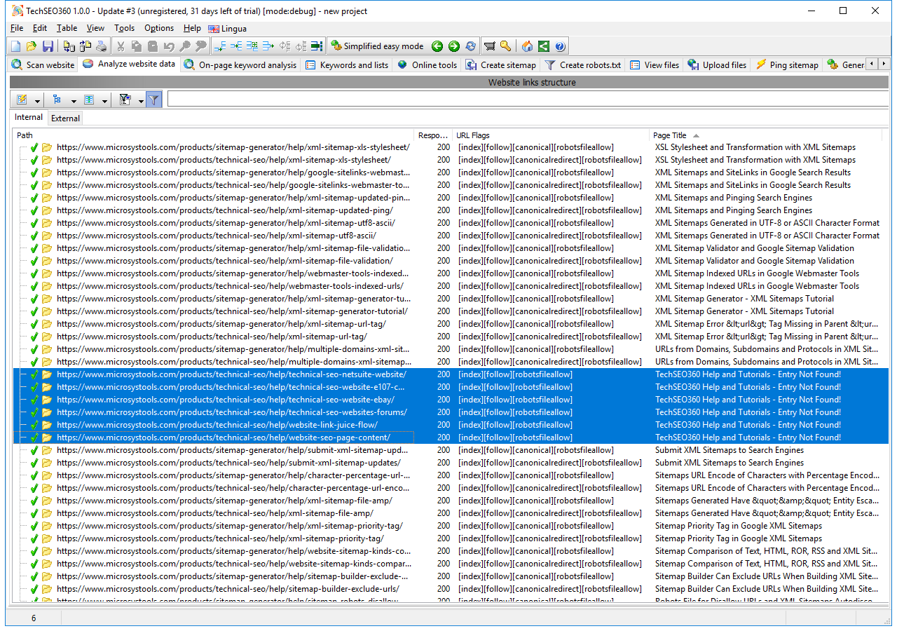 TechSEO360 is a big program. While you should download and see it all - we have some screenshots for you
