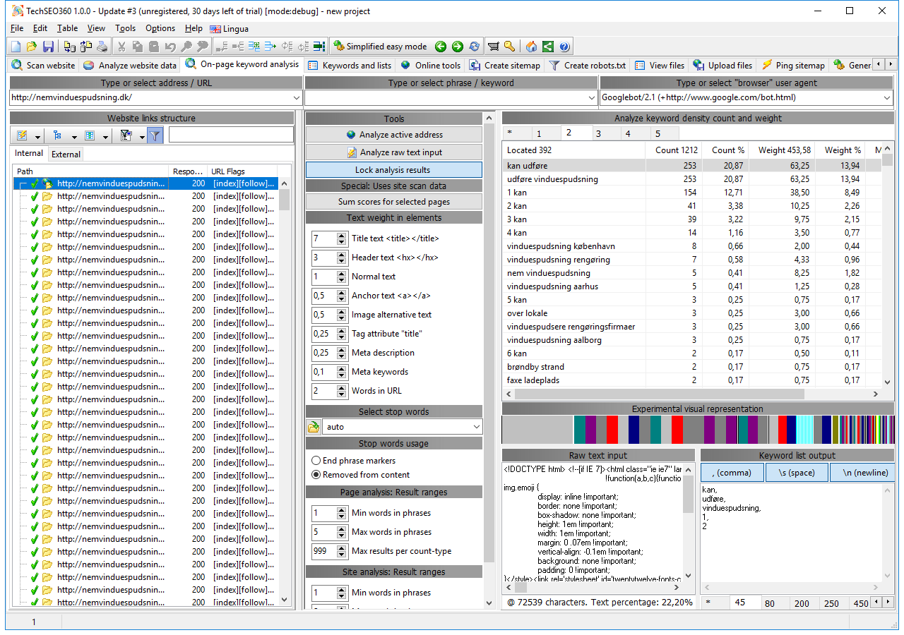 Owner of dennisslj.dk and head of SEM at StepUp MediaTechSEO360 is a very strong, even very powerful tool. Whether you want a quick overview, or an in-depth audit of your or your competitors website, TechSEO360 can handle it. Try it out once, and you're hooked.